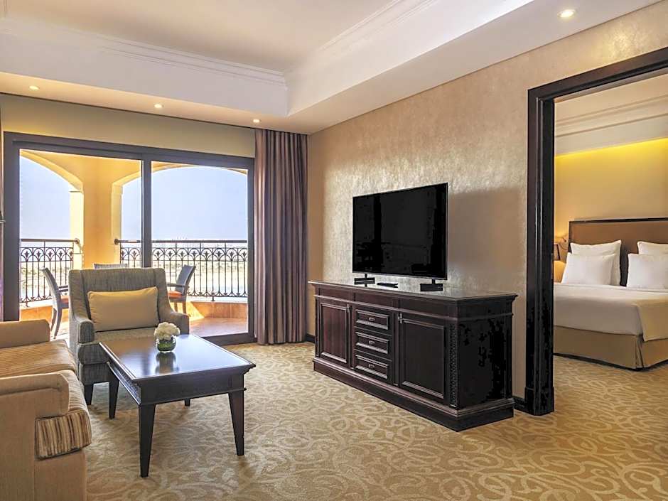 Luxurious suites starting from 115 sqm offering modern amenities including one master bedroom and guest room, all with private bathrooms, separate living and dining area, 40” large interactive TVs and private balcony with views of the Gulf.